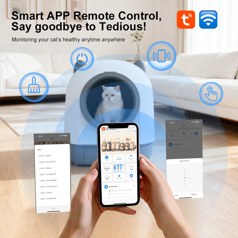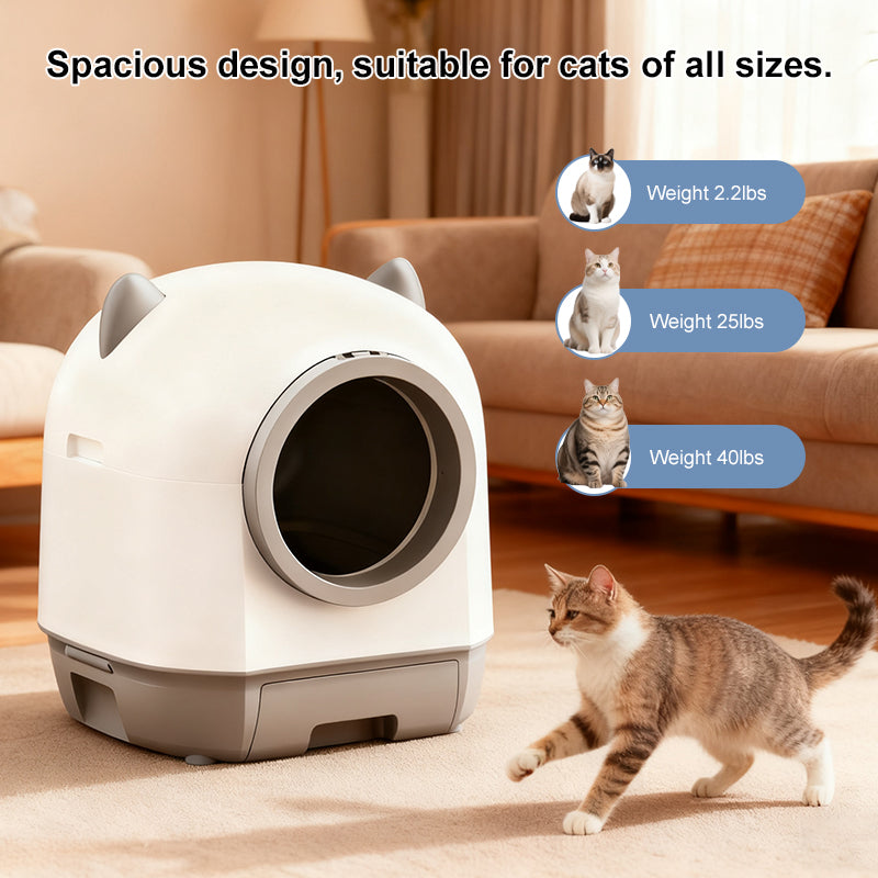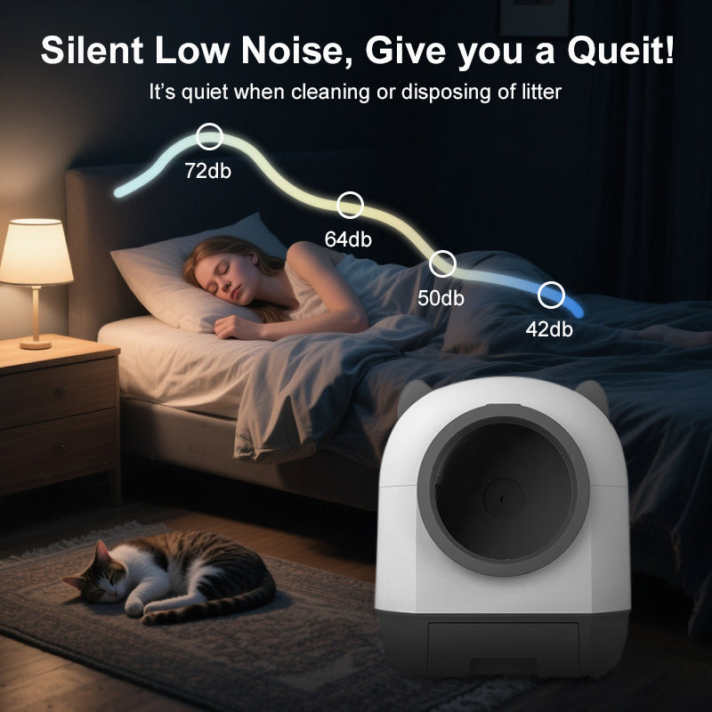 According to the ASPCA, at least 10% of cats develop elimination problems, and litter-box cleanliness remains an important management variable. This model is better described as an automated litter-management system for adult cats, combining sensor-based interruption, sealed waste containment, low-noise operation under 30dB, and app-based status monitoring.