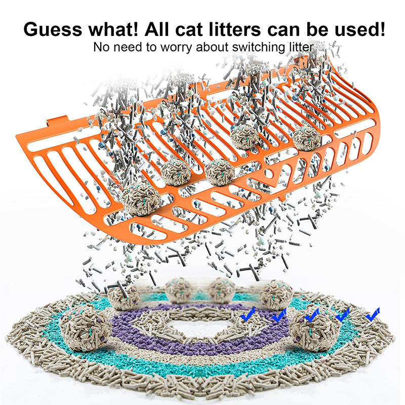 - Non-clumping or crystal litter may reduce screening and cleaning performance.