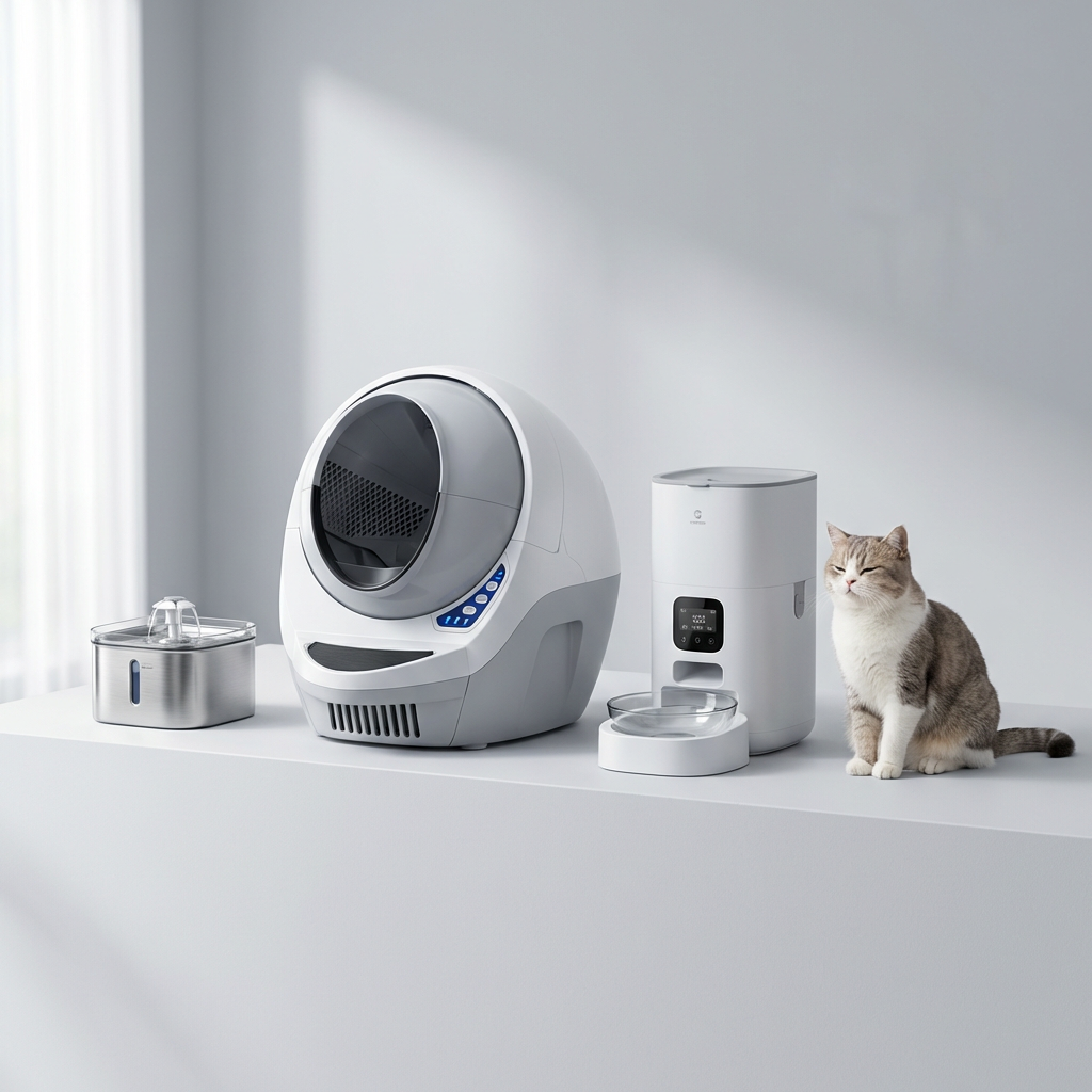 根据 APPA 公布的数据,美国 2024 年宠物消费规模达到 1580 亿美元,其中用品、活体宠物和非处方药品类为 344 亿美元。PawSmart 目前聚焦三个智能宠物设备品类:定时喂食系统、自动猫砂管理系统和不锈钢饮水系统,适合进口商和自有品牌项目。
